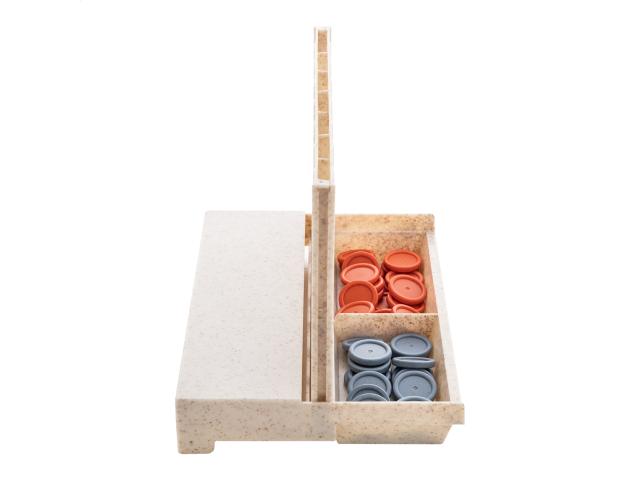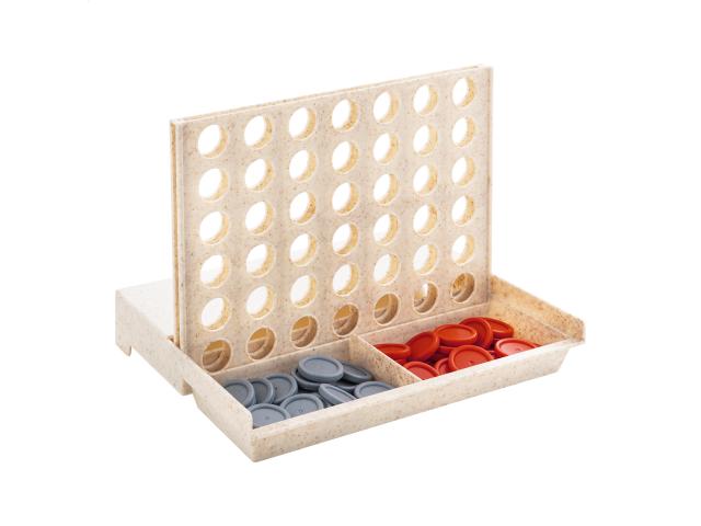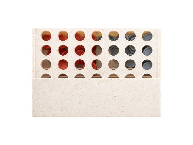 Ecological wheat straw plastic board game with foldable vertical board and 42 tokens. During the game players take turns dropping tokens into the board, aiming to align four tokens in a row.