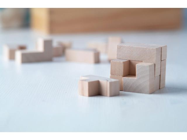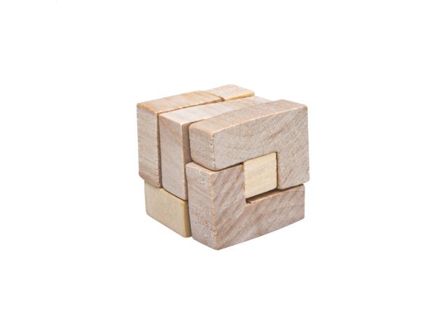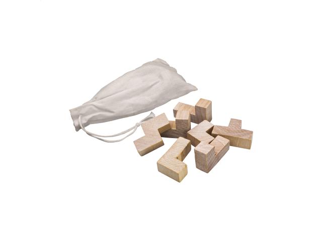 Wooden magic puzzle cube, in natural coloured cotton pouch. Pouch size: 96×165 mm.