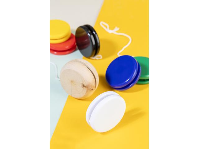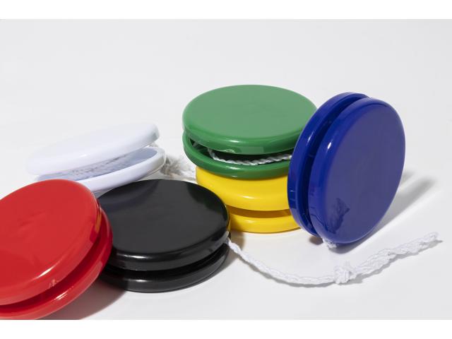 Flat, recycled PS plastic yo-yo.