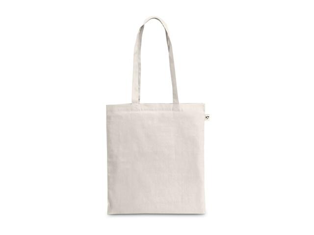 Jednobojna vrećica od 100% recikliranog pamuka (180 g/m²), s ručkama od 65 cm. Reciklirani pamuk je jednobojan i neobojan. Sirovina se koristi u svom izvornom obliku i boji, bez upotrebe kemikalija za bojenje ili izbjeljivanje, što pridonosi manjem utjecaju. Jednobojna boja se dobiva odabirom reciklirane pređe iste nijanse, a mogu se pojaviti nečistoće i varijacije u boji. Promocija do 15% popusta vrijedi od 03/11/2025 do 12/12/2025 i ograničena je na postojeće zalihe. Za više informacija o uvjetima ove promocije obratite se svom voditelju računa. 380 x 420 mm