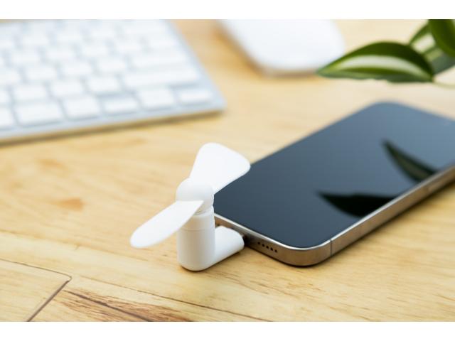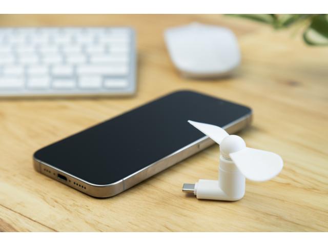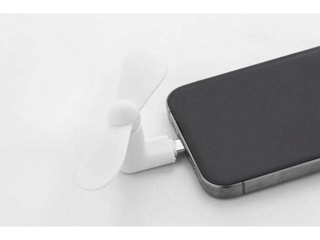 Electric mobile phone fan with USB-C connection, in TPE plastic.