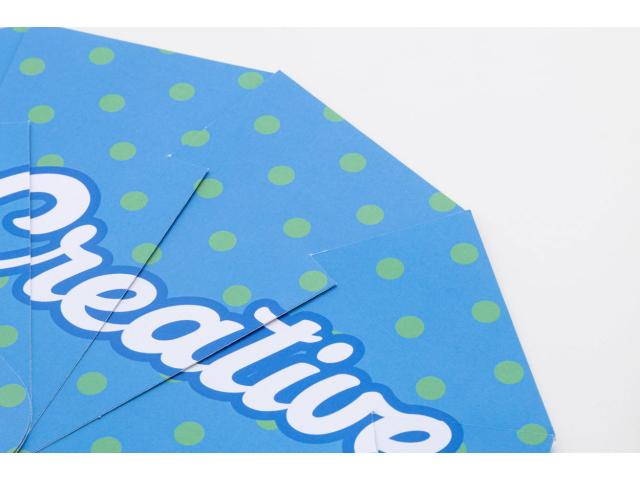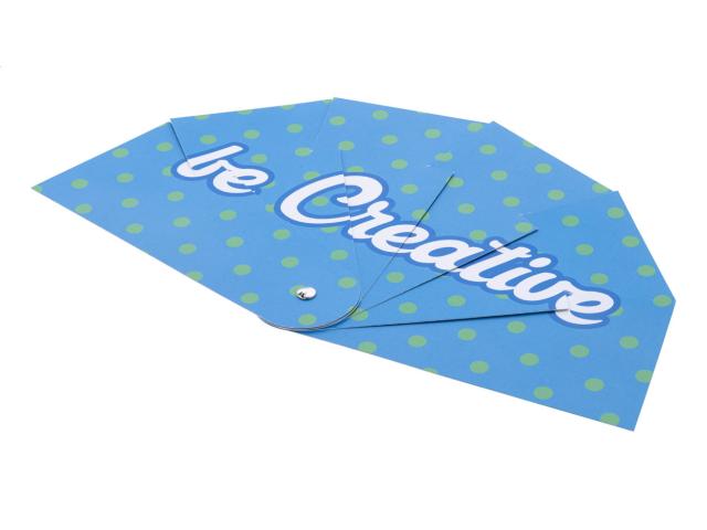 Custom made, foldable paper hand fan with full colour graphics. Price includes digital printing on both sides. MOQ: 100 pcs.