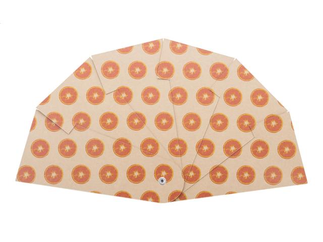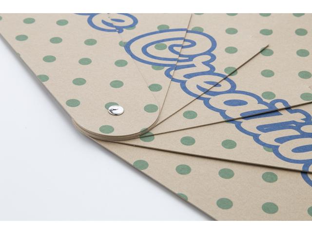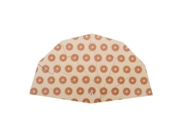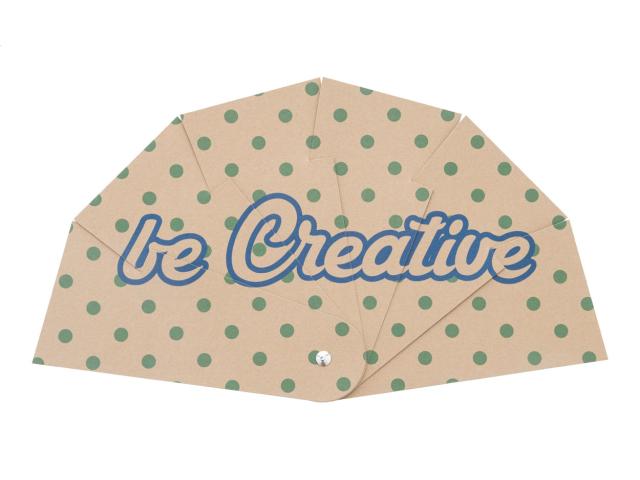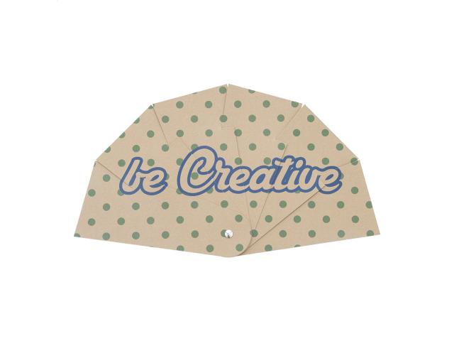 Custom made, foldable kraft paper hand fan with full colour graphics. Price includes digital printing on both sides. MOQ: 100 pcs.