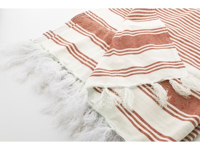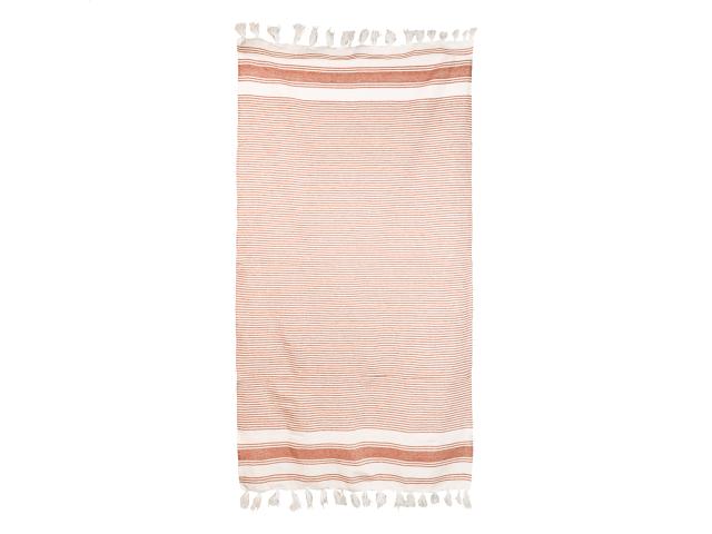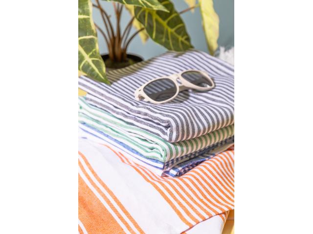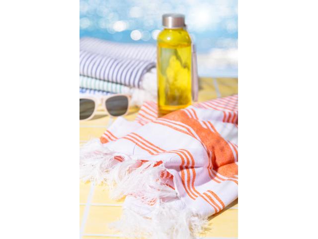 Two-tone striped pareo beach towel in 70% cotton and 30% polyester. 210 g/m².