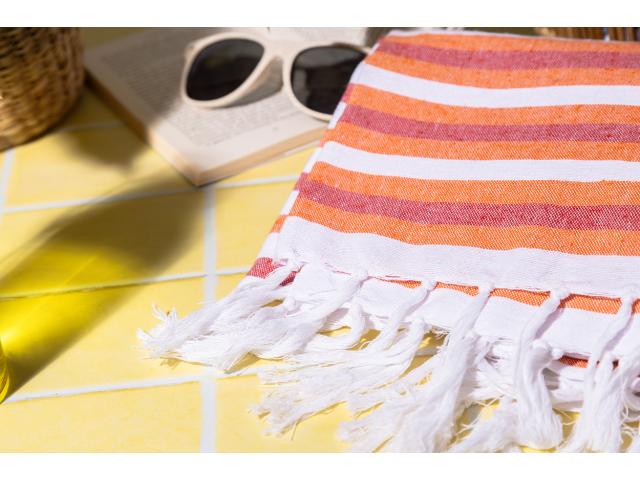 Three-tone striped pareo beach towel in 100% cotton, 210 g/m².
