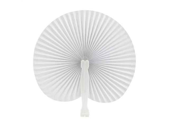 Paper hand fan with plastic stick.