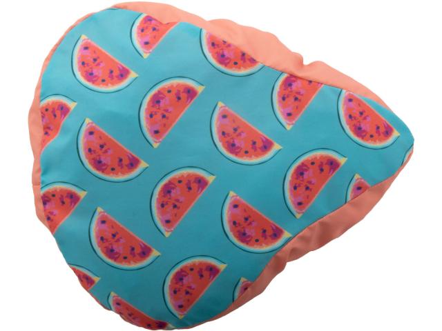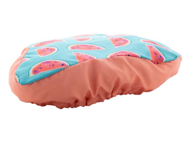 Custom made, full colour printed bicycle seat cover with elastic band, water repellent 190T polyester. Price includes sublimation printing. MOQ: 50 pcs.