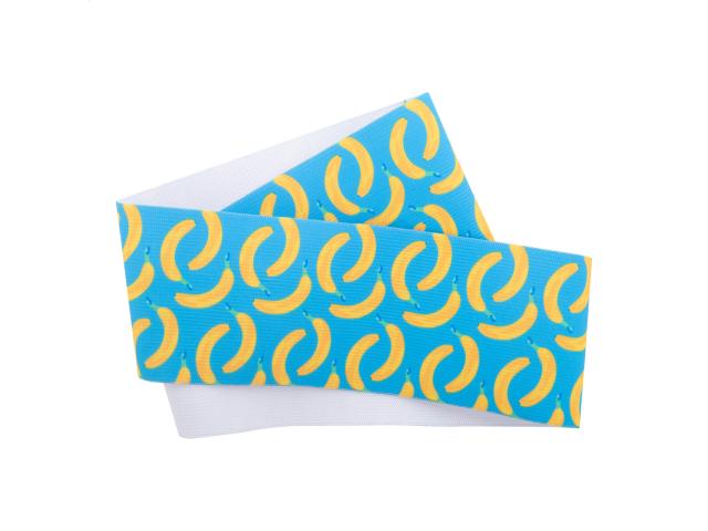 Custom made elastic exercise band in polyester for fitness training. With sublimation printed graphics on the outside. MOQ: 50 pcs.
