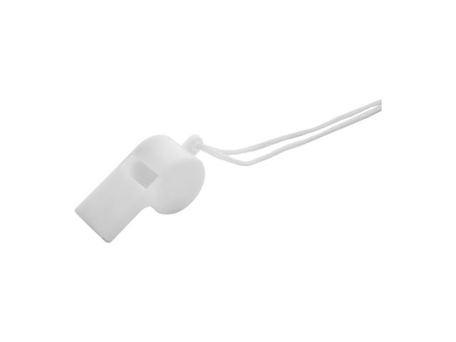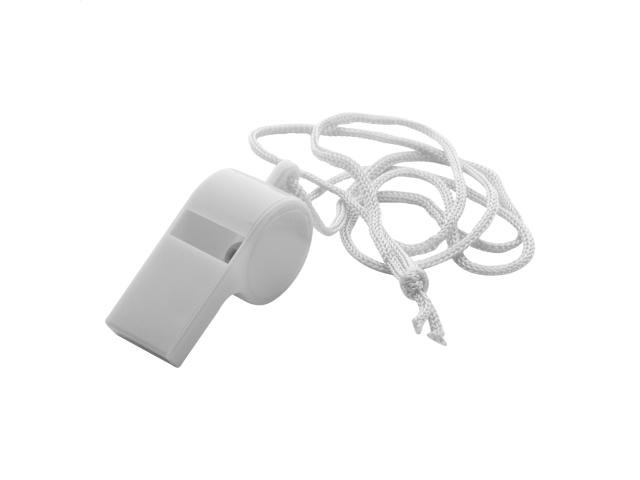 Plastic whistle with matching colour lanyard.