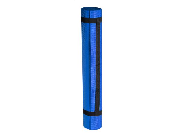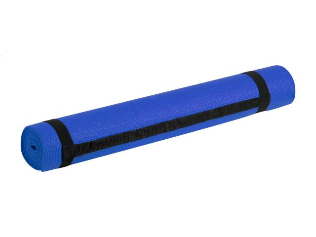 PVC yoga mat with handle strap and carry bag.