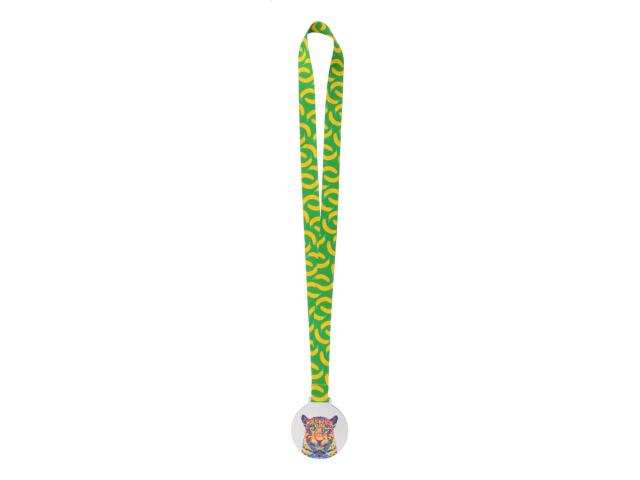 Custom made, brushed aluminium composite medal with full colour graphics. On sublimation printed RPET lanyard. Price includes sublimation and UV LED printing. MOQ: 100 pcs.
