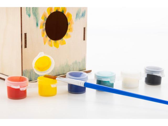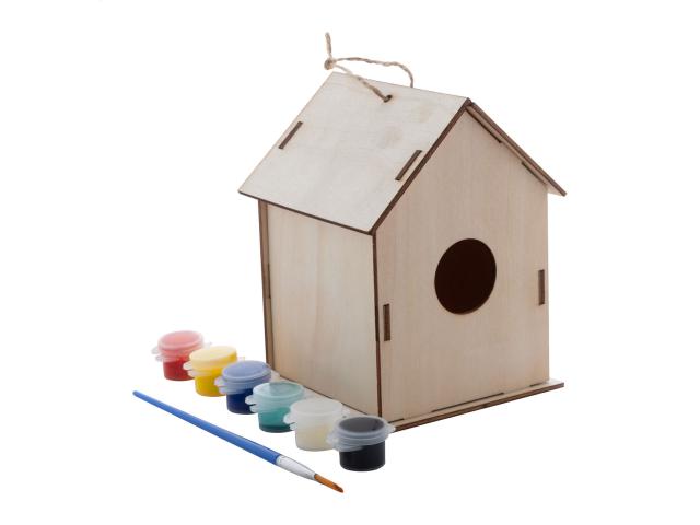 Wooden DIY bird house with watercolour painting kit (with brush and 6 paints). Delivered flat-packed.