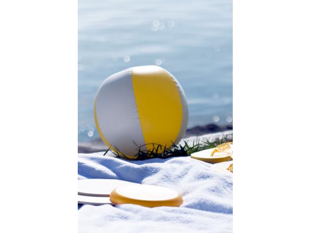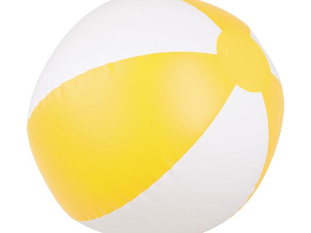 6 panels PVC beach ball with white and coloured panels. Deflated size: 320 mm.