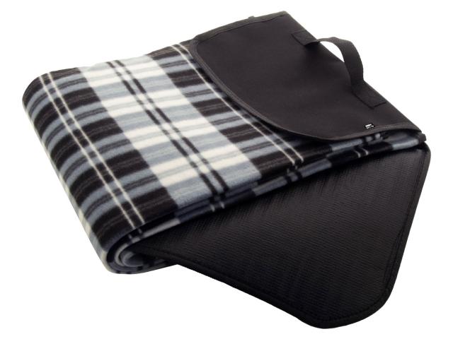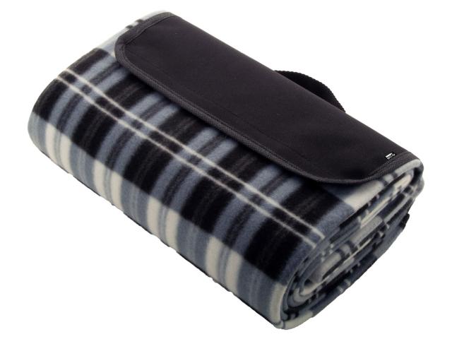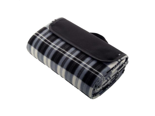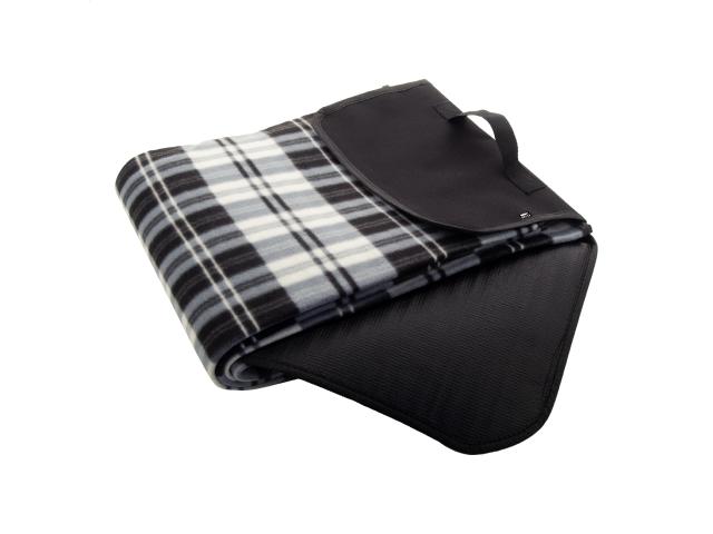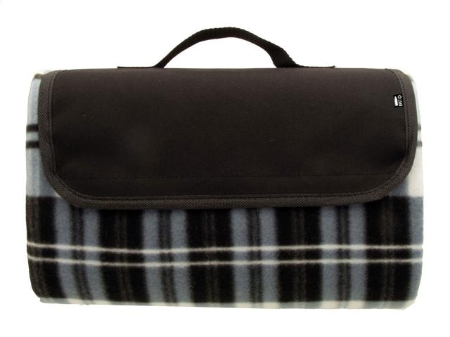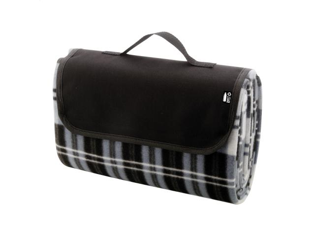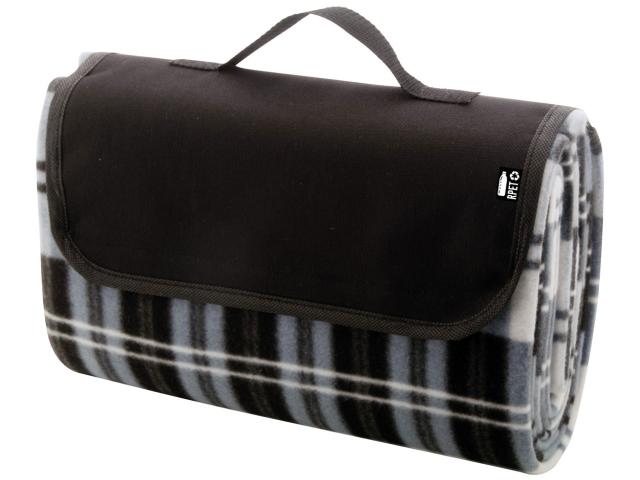 Foldable RPET polar fleece picnic blanket with water resistant coated back side and handle. RPET polyester, 160 g/m².