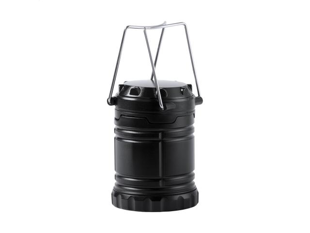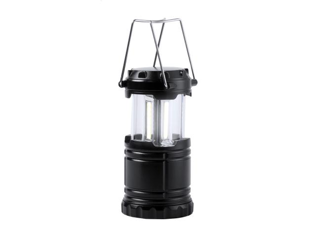 Portable camping lamp with metal carrying handles and 30 LEDs in 3 COB lights. Operates with 3 AAA batteries, without battery. In gift box.