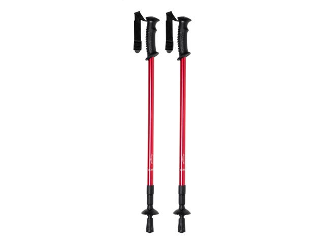 2 pc telescopic nordic walking stick set with aluminium body, ergonomic grip, wrist straps and anti-shock system. With snow baskets in carry bag.