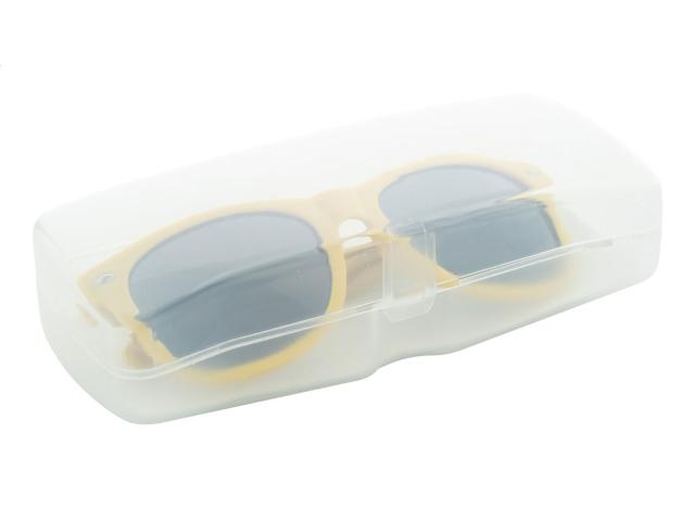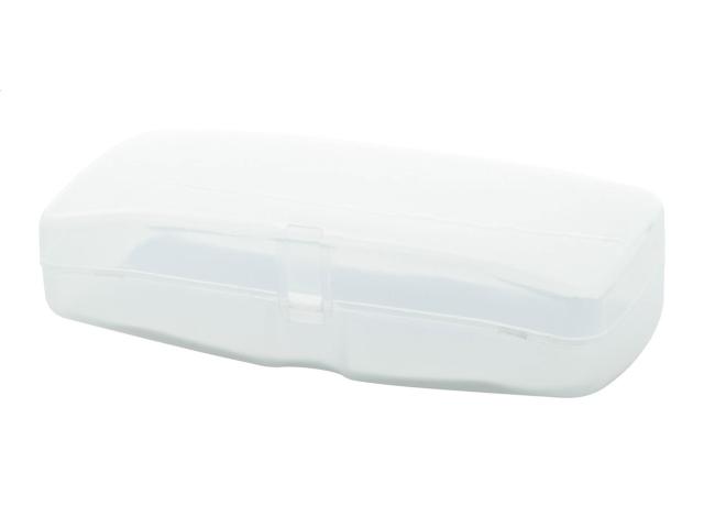 Plastic glasses case with white foam padding.