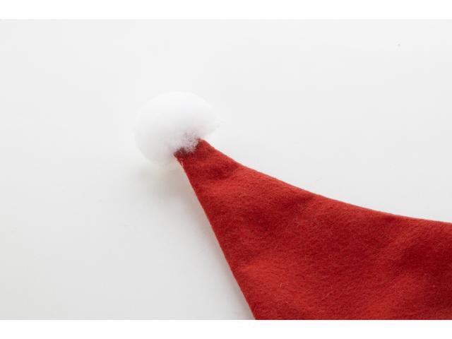 Classic Christmas Santa hat in RPET felt with white trim and pompom.