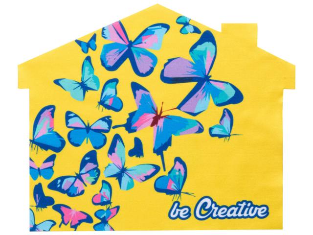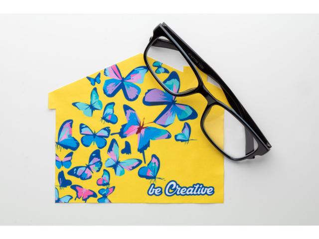 Custom made RPET microfibre (170 g/m²) cleaning cloth for glasses and screens. Produced in unique shape with sublimation printed design. MOQ: 100 pcs.