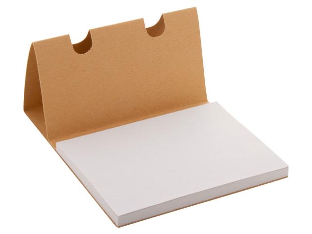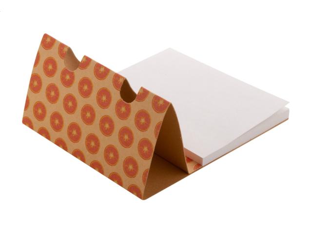Custom made, recycled kraft paper pen holder with sticky notes. Includes 50 sheets of recycled paper sticky notes (100×75 mm). Price includes full colour printing on the top. MOQ: 100 pcs.