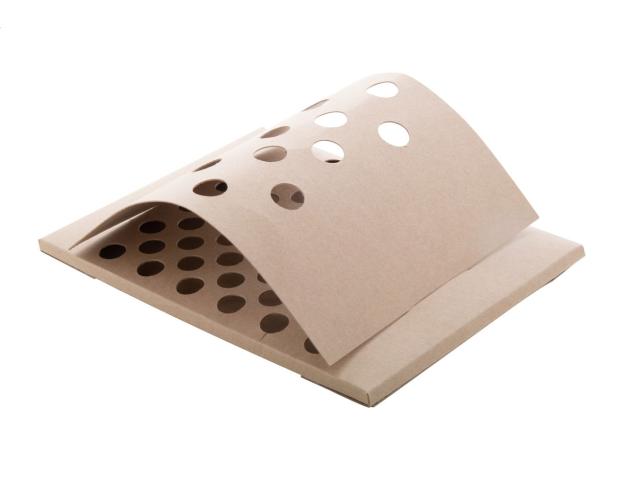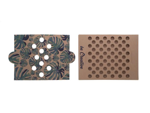 Custom made, kraft paper pen holder. Price includes full colour printing. MOQ: 100 pcs. Delivered flat-packed.