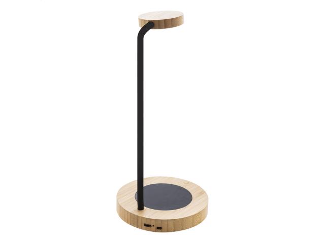 Bamboo multifunctional desk lamp with built-in mug warmer. With warm, natural and cool light modes. Including USB charger cable.