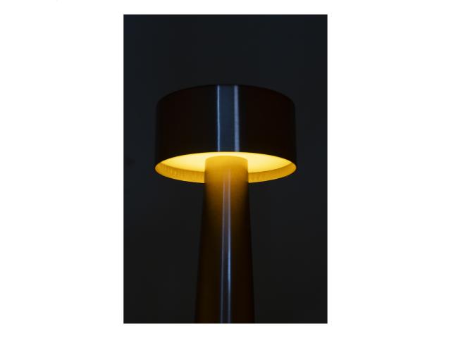 Golden finish metal table lamp with 24 LEDs, adjustable brightness and 800 mAh USB rechargeable battery. With warm, natural and cool light modes. Including USB charger cable.