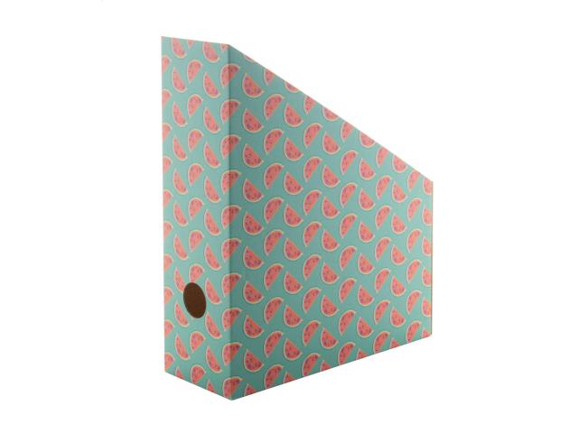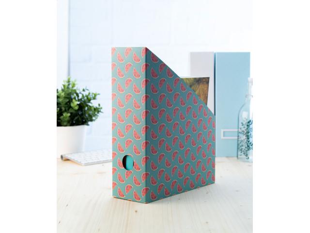 Custom made, full colour printed corrugated cardboard desk file organiser. Delivered flat-packed. MOQ: 50 pcs.