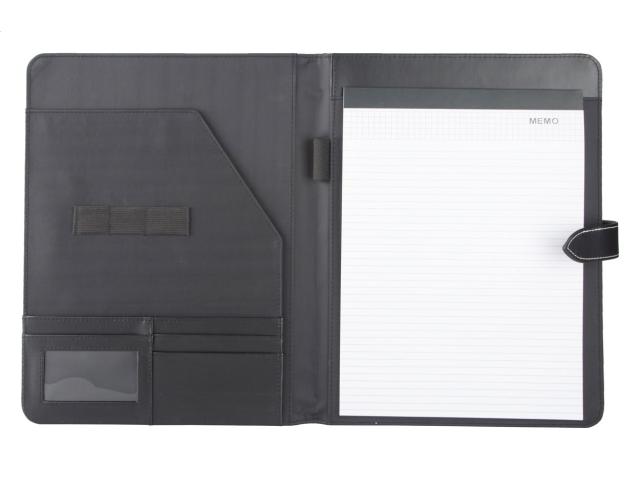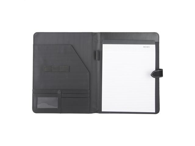 A4 sized, PU leather document folder with 20 lined sheets notepad, pen holder and business card holder.