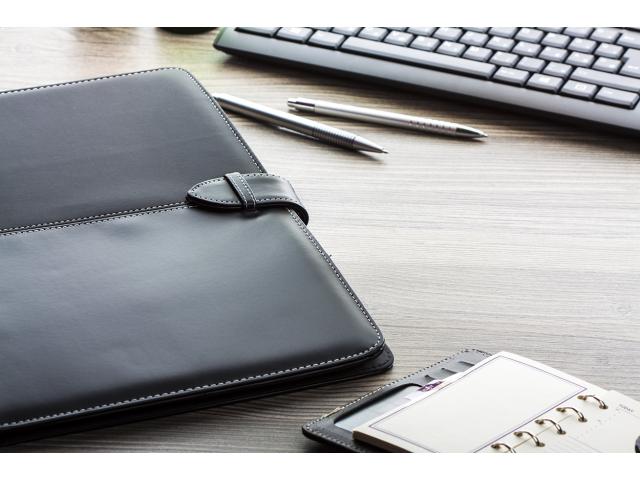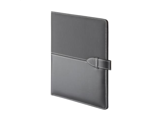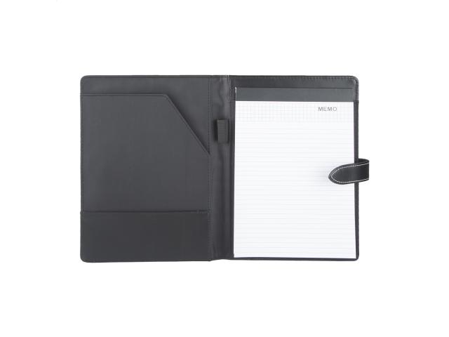 A5 sized, PU leather document folder with 20 lined sheets notepad and pen holder.