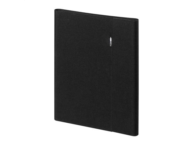 A4 sized, 600D RPET polyester document folder with magnetic closure, foldable mobile holder and 20 lined sheets notepad. With distinctive RPET label.