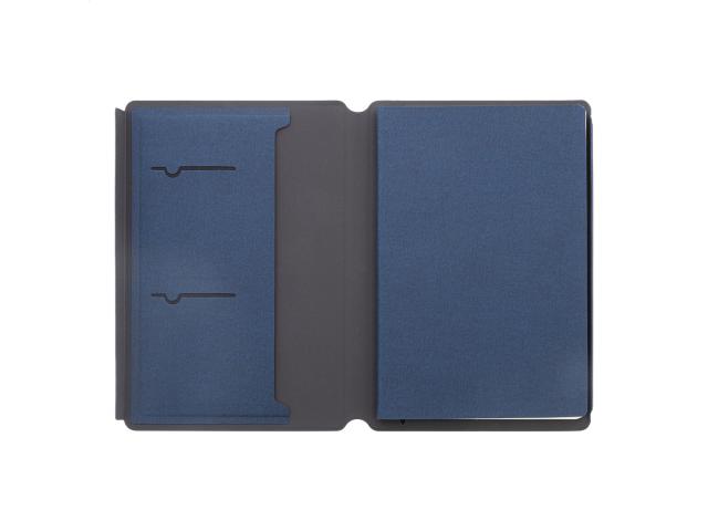 A5 sized, recycled PU leather document folder with inside organizer pockets and magnetic closure. With 64 lined sheets notepad in recycled paper.