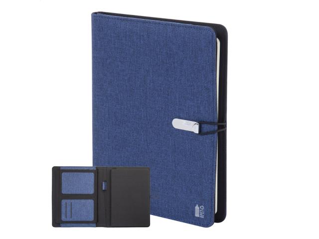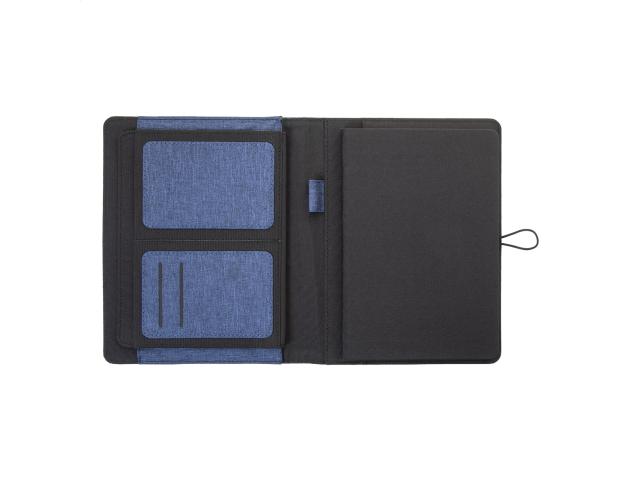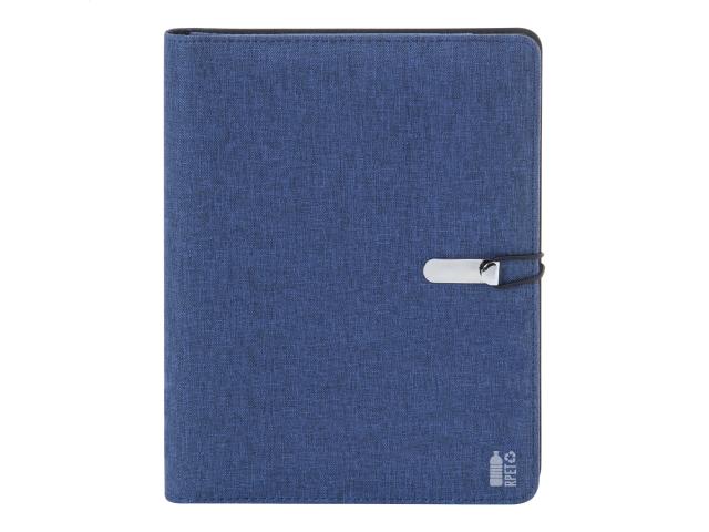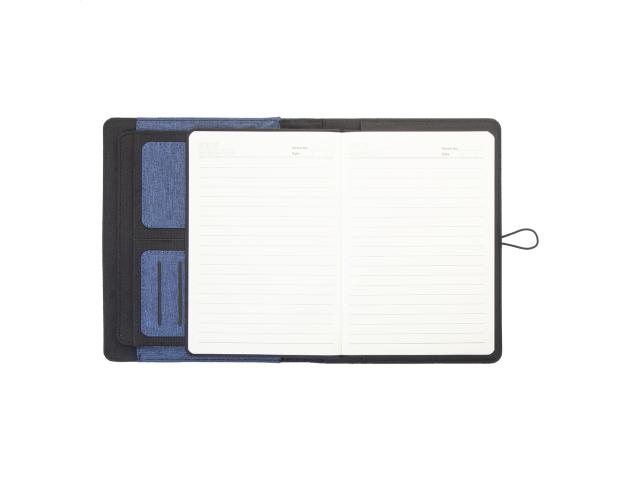 A5 sized, 300D RPET polyester document folder with 64 lined sheets notepad and multiple inside organizer pockets.