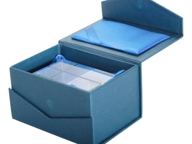 Glass block. Delivered in blue, carton gift box with silk inlay and magnetic lock.