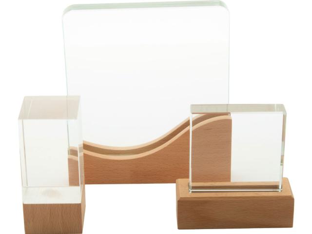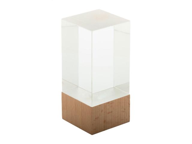 Glass trophy with beech wood base. In kraft gift box.