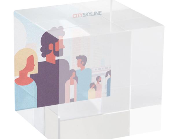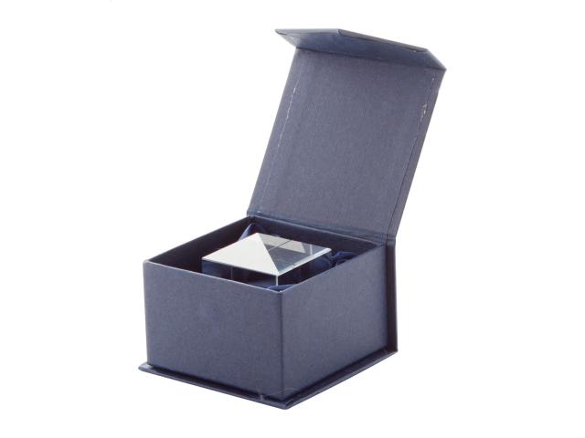 Glass cube. Delivered in blue, carton gift box with silk inlay and magnetic lock.