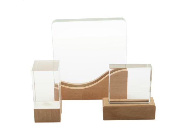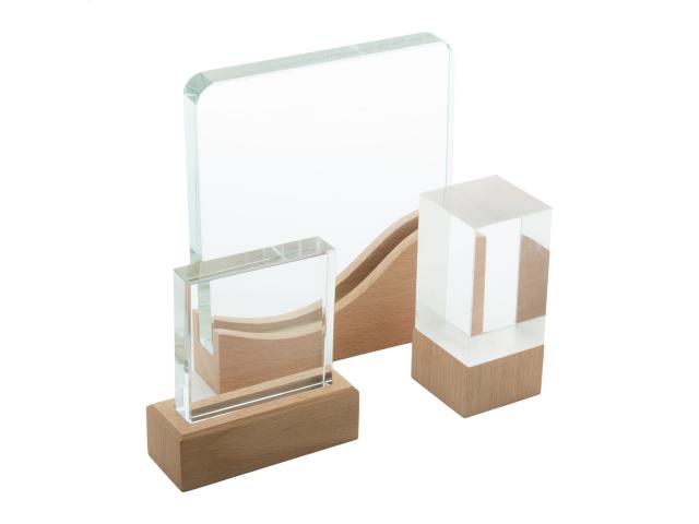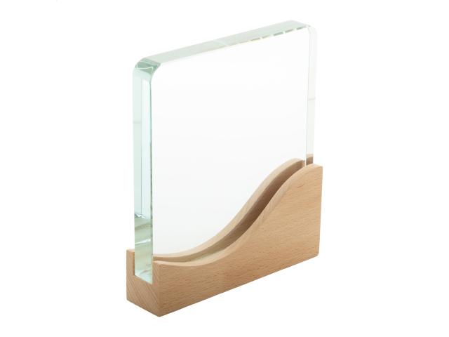 Glass trophy with beech wood base. In kraft gift box.