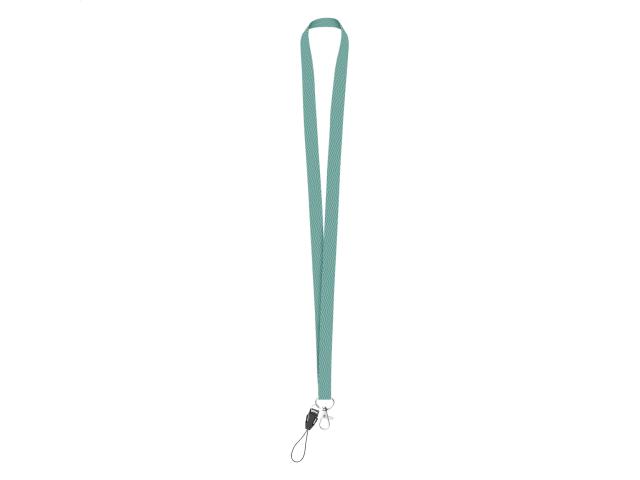 Custom made, 15 mm wide polyester lanyard with metal carabiner and mobile string. With sublimation printed graphics on both sides. MOQ: 100 pcs.
