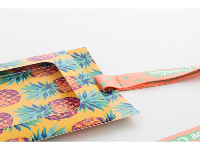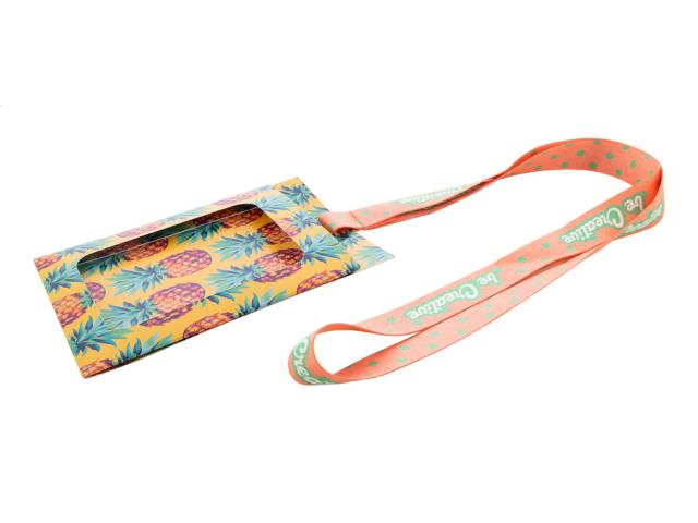 Custom made, RPET lanyard with full colour printed paper badge holder. With sublimation printed graphics on both sides. Fits badges up to 105×120 mm. MOQ: 100 pcs.