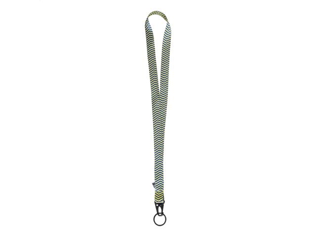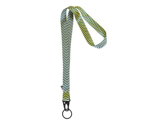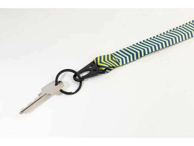 Custom made, RPET lanyard with black metal tactical style snap hook carabiner and keyring. With sublimation printed graphics on both sides. MOQ: 100 pcs.