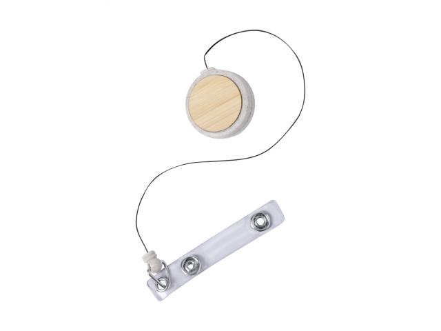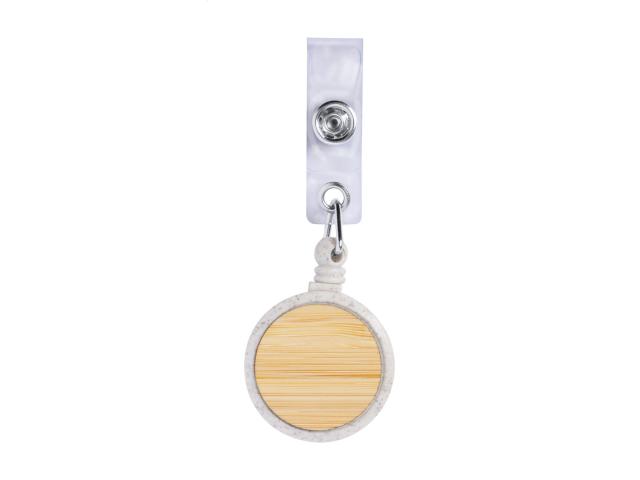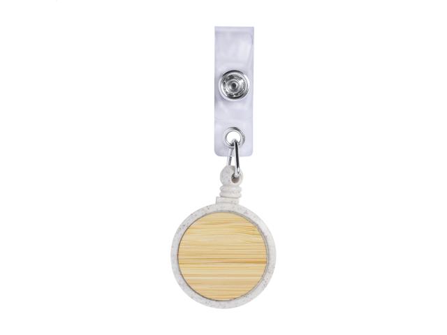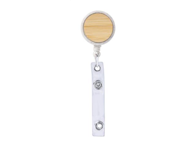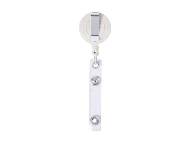 Ecological wheat straw plastic and bamboo badge holder with press-stud closure, telescopic line and metal clip.
