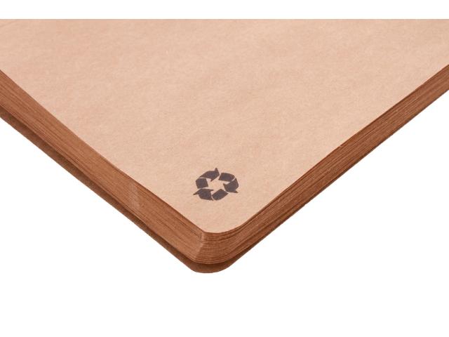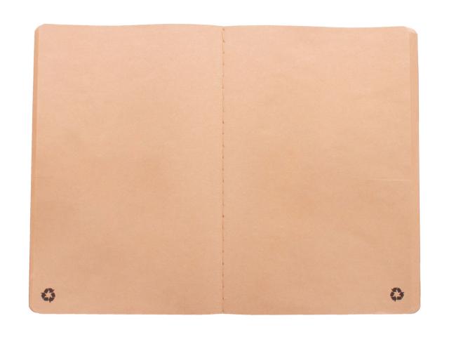 Recycled paper covered notebook with sewn cover and 60 blank sheets in recycled kraft paper. A5 size.