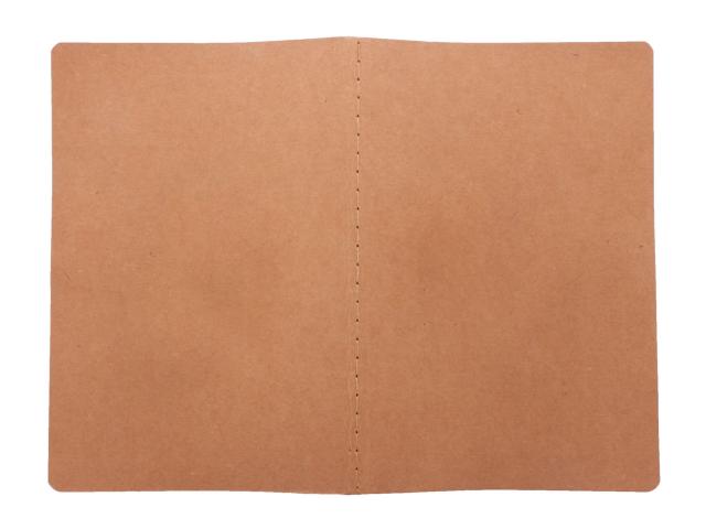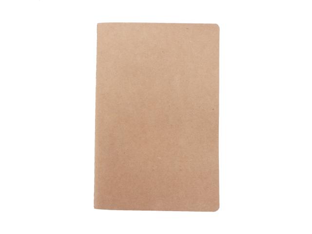 Recycled paper covered notebook with sewn cover and 60 blank sheets in recycled kraft paper. A6 size.