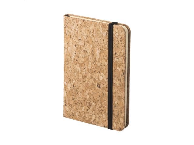 Natural cork-covered notebook with 80 blank sheets and rubber strap, A6.