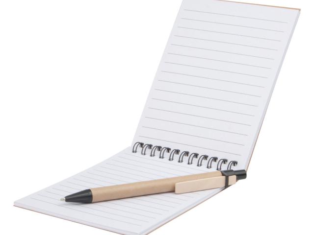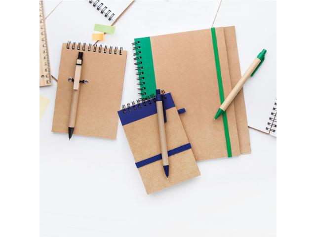 60 lined sheets spiral notebook with ballpoint pen (blue refill), made of recycled paper.