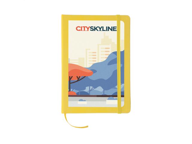 PU leather covered notebook with 100 blank sheets, bookmark and rubber strap.