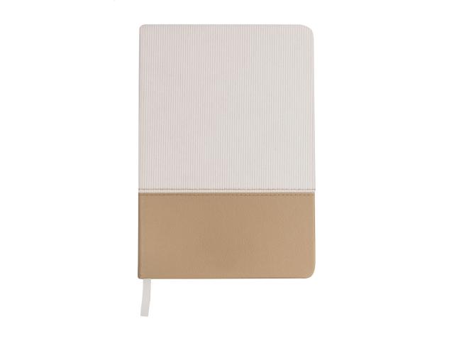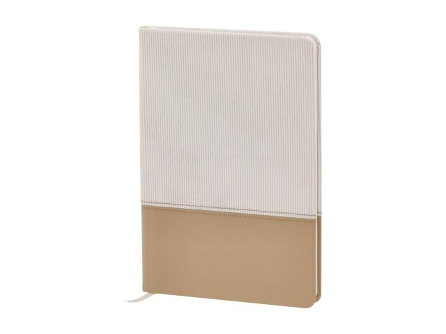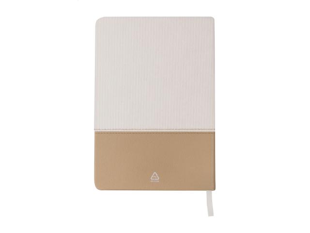 Textured polyester and recycled PU leather covered notebook with bookmark and 80 lined sheets. A5 size.