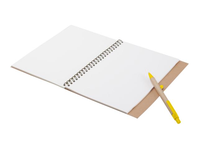 Recycled paper, 60 blank sheets spiral notebook with paper ballpoint pen.