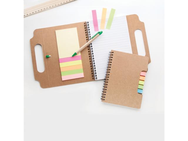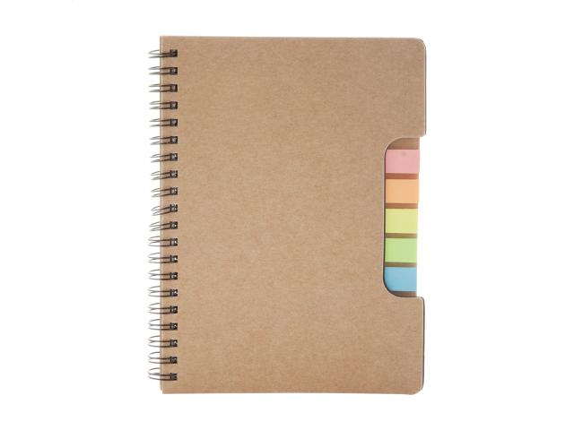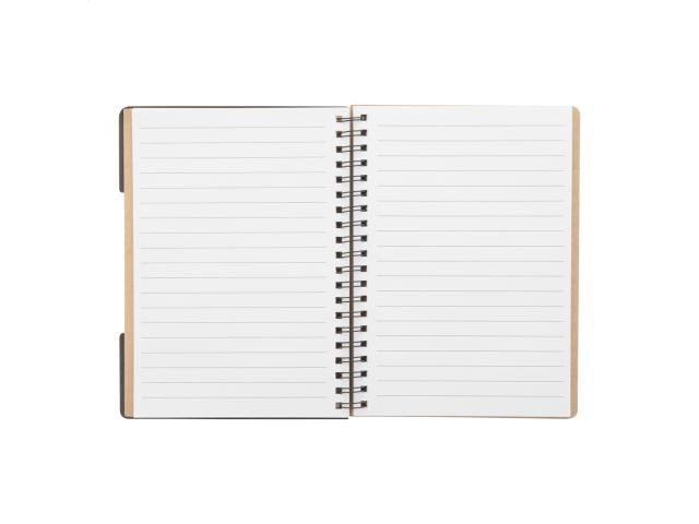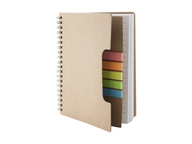 Recycled paper spiral notebook with 60 lined sheets and page markers (5 × 25 pcs).