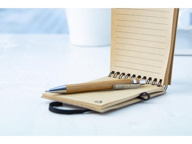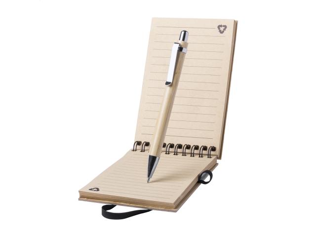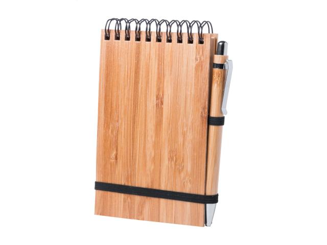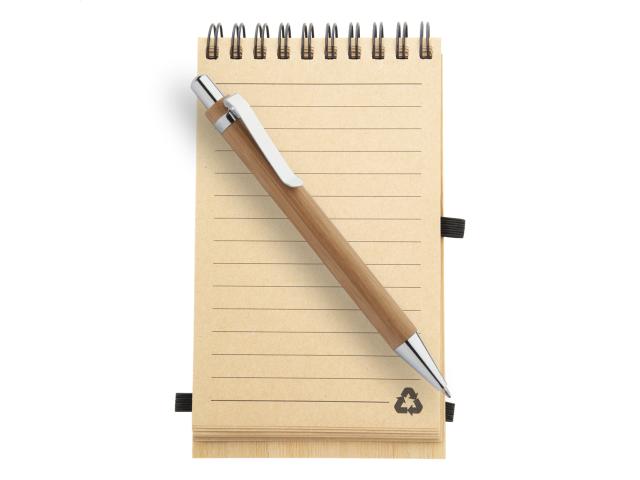 Bamboo covered spiral notebook with 70 lined sheets. Including bamboo ballpoint pen with blue refill.